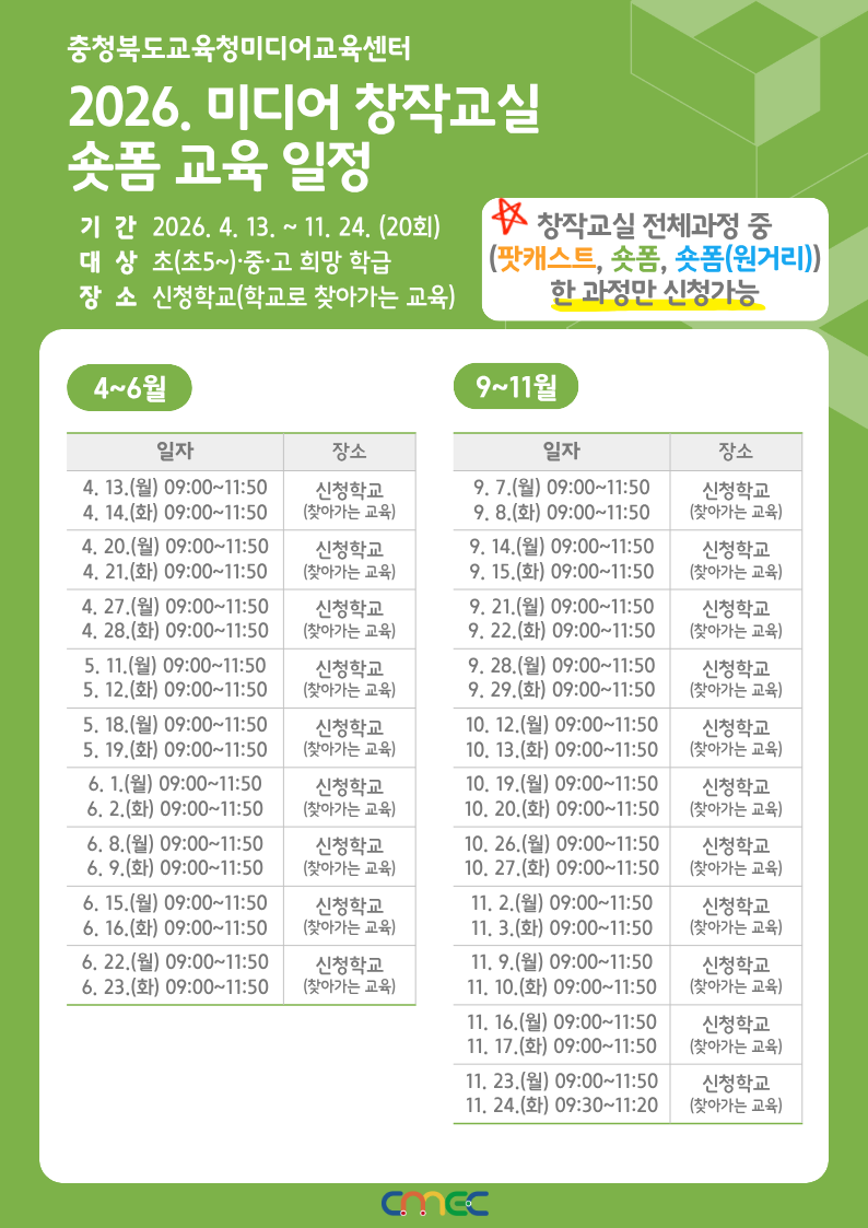 2026. 미디어 창작교실(숏폼) 추가 신청